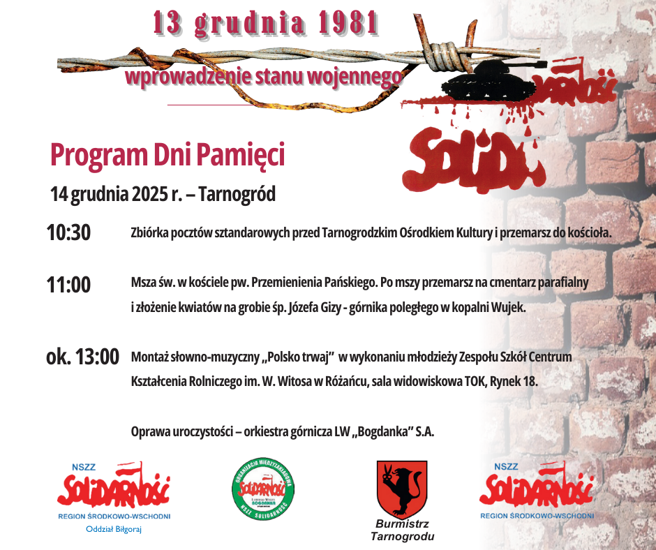 Jesteś tutaj: Strona Główna1 / Aktualności2 / Relacje3 / 44. ROCZNICA WPROWADZENIA STANU WOJENNEGO