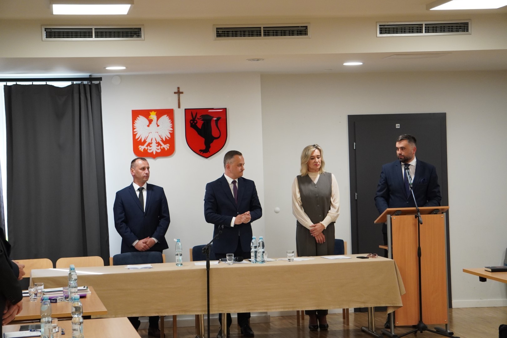 Radny Senior odczytał rotę ślubowania, po czym najmłodszy wiekiem radny Łukasz Krupczak odczytał kolejno nazwiska obecnych na sesji Radnych.