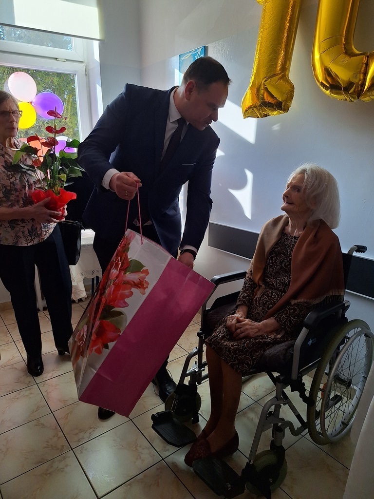 Burmistrz Tarnogrodu Paweł Dec życzył Szanownej Jubilatce przede wszystkim zdrowia, szczęścia, pogody ducha i jeszcze wielu lat spokojnego życia. Z okazji urodzin Jubilatka otrzymała od przybyłych gości: imienny list gratulacyjny, bukiety kwiatów oraz liczne upominki. Pani Marianna nie kryła radości ze spotkania, podczas którego z promiennym uśmiechem i entuzjazmem przyjmowała urodzinowe życzenia.