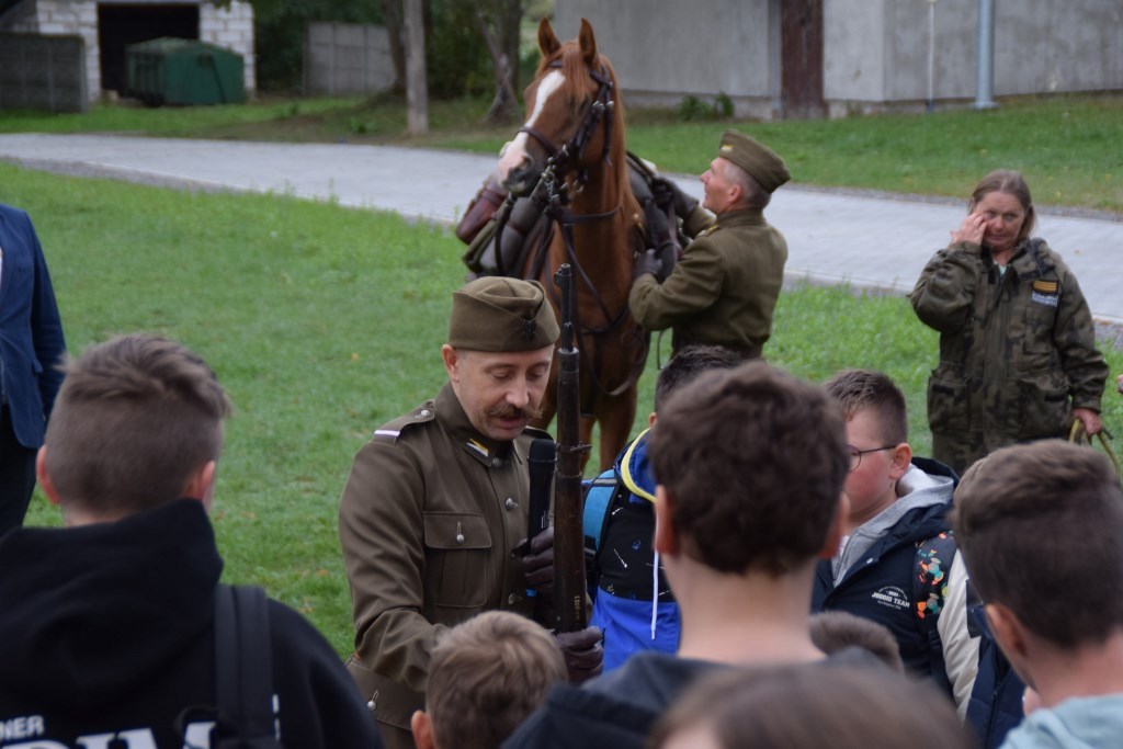 W poniedziałek  i wtorek zorganizowano żywe lekcje historii na terenie Zespołu Szkół Centrum Kształcenia Rolniczego im. Wincentego Witosa w Różańcu. Wszystkich zebranych powitała pani Dyrektor ZSCKR Renata Majewska wraz z Wiceburmistrzem Tarnogrodu panem Tomaszem Legieciem. W spotkaniach wzięli udział uczniowie wszystkich szkół podstawowych z terenu miasta i gminy Tarnogród. Uczniowie  mieli okazję wysłuchać prelekcji na temat powstania kawalerii, a także zobaczyli „na żywo” i mogli dotknąć umundurowanie i uzbrojenie ułana okresu II RP. Poznali zasady twardej służby kawaleryjskiej. Duże wrażenie na uczniach wywarła możliwość obejrzenia munduru kawaleryjskiego, założenia wyposażenia i uzbrojenia bojowego ułana z okresu międzywojennego. Najwięcej radości sprawiło uczniom, gdy mogli wziąć do ręki szablę, lancę, karabin, ładownice czy szelki kawaleryjskie, ostrogi i bagnet. Wielkie zainteresowanie wzbudziły odrestaurowany rząd kawaleryjski w pełnym stroczeniu, ogłowie z munsztukiem.  Zaprezentowano także musztrę na koniach. Podczas prelekcji uczniowie poznali fakty historyczne i ciekawostki z życia ułanów. Zapoznali się także z genezą powstania i historią Ochotniczego  Szwadronu 3. Pułku Ułanów Śląskich.