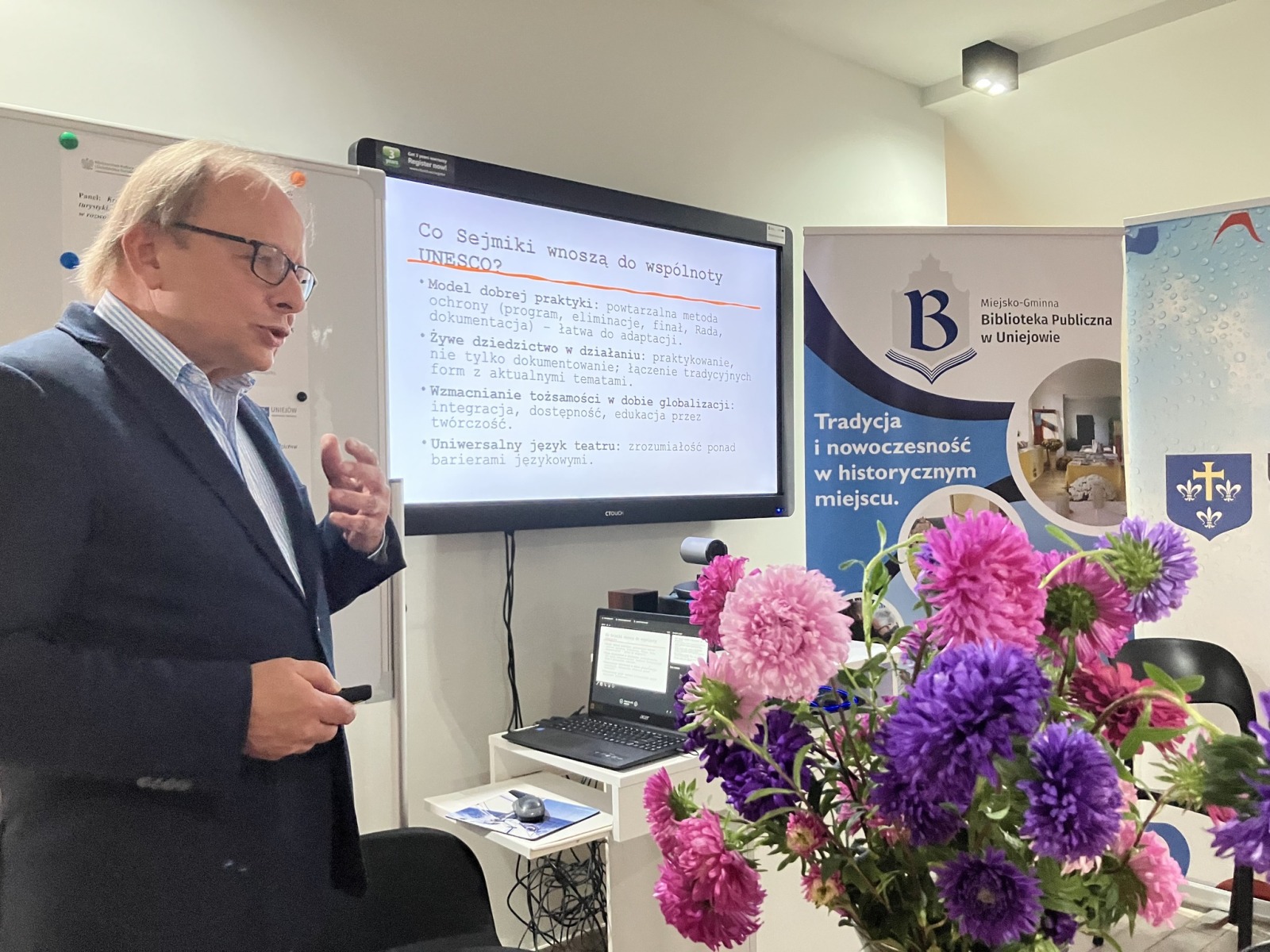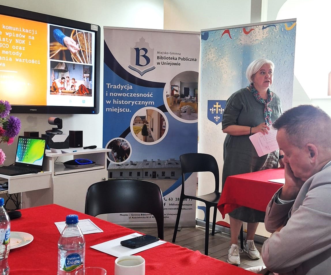 Na zaproszenie Burmistrza Miasta Uniejów Józefa Kaczmarka, przedstawiciele Tarnogrodu – Tomasz Legieć, zastępca burmistrza Tarnogrodu oraz Renata Ćwik, dyrektor Tarnogrodzkiego Ośrodka Kultury – uczestniczyli w panelach dyskusyjnych w ramach spotkania „Centrum Kompetencji Niematerialnego Dziedzictwa Kulturowego. Kontynuacja”, które odbyło się 16 września 2025 r. w Miejsko-Gminnej Bibliotece Publicznej w Uniejowie.